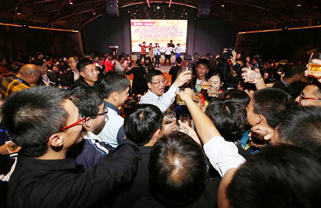 豪情慶功酒會(huì)上,李總與大家共同舉杯暢飲