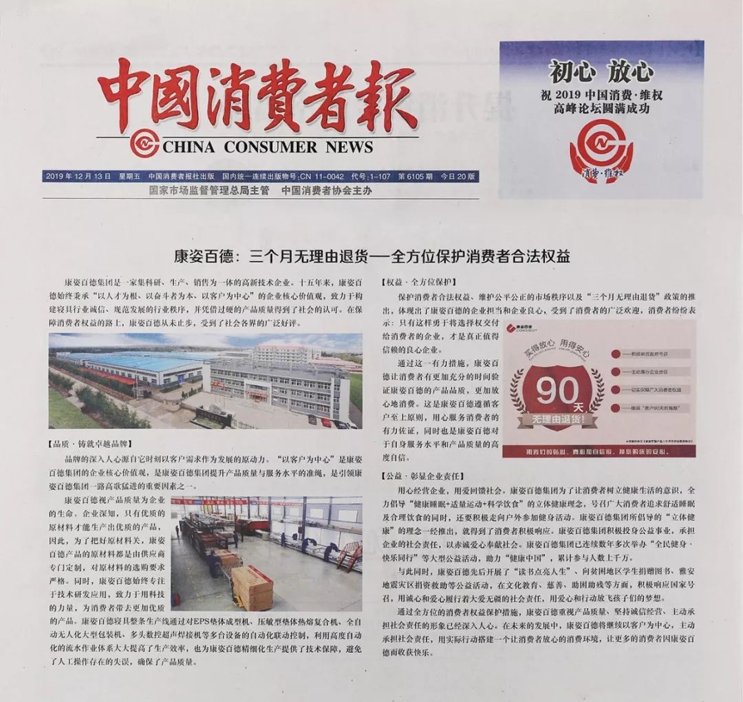 導(dǎo)讀2019年12月13日,《中國消費(fèi)者報》、《中國消費(fèi)者雜志》同步對康姿百德集團(tuán)進(jìn)行報道,以下是報道全文: