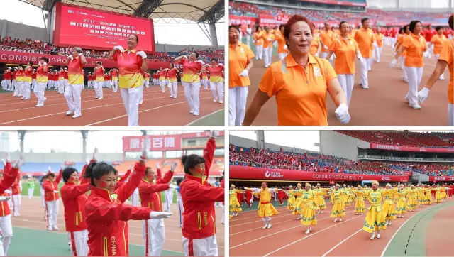 在賽場(chǎng)上,參賽隊(duì)員們或身著簡(jiǎn)約時(shí)尚的運(yùn)動(dòng)服,或身著絢麗多彩的民族服飾,在環(huán)形的奧體中心舞動(dòng)成了一道流動(dòng)風(fēng)景,渲染出一派盛世歡歌的壯美景象。