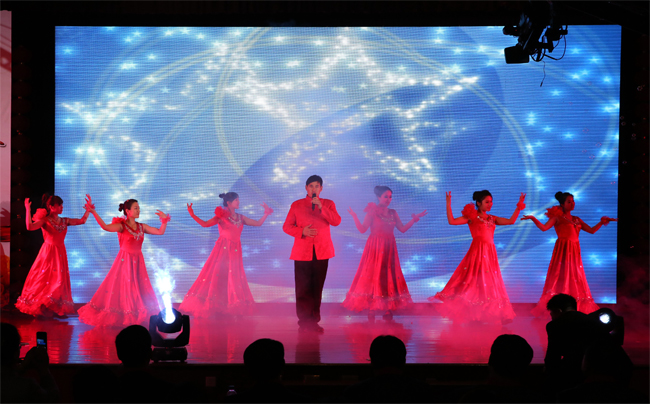 精彩紛呈的文藝表演為本次年會(huì)平添了喜悅氣氛。農(nóng)民歌手朱之文帶來(lái)的兩首歌曲《滾滾長(zhǎng)江東逝水》、《月滿西樓》,讓康姿百德人近距離領(lǐng)略到“大衣哥”的風(fēng)采;在2013年“過(guò)年七天樂(lè)”節(jié)目中與李總高歌一曲的著名歌唱家李丹陽(yáng),再次與李總合作一曲《敖包相會(huì)》,得到了強(qiáng)烈反響,讓人們?cè)僖淮晤I(lǐng)略到了董事長(zhǎng)多才多藝的一面;偉大領(lǐng)袖毛主席,朱德,江澤民的影視扮演者東方子,陶前鋒,張寶恩也親臨現(xiàn)場(chǎng),對(duì)康姿百德公司以及推廣健康寢具,造就百歲民族的這一企業(yè)宗旨給予了高度評(píng)價(jià)和肯定,康姿百德人在一睹領(lǐng)袖風(fēng)采的同時(shí),也把整個(gè)晚會(huì)的氣氛帶到了一個(gè)新的高度;秦皇島男孩楊德朗與公司員工共同表演的《最美中國(guó)人》,充分展現(xiàn)出康姿百德人朝氣蓬勃,積極向上的精神風(fēng)貌,感染了現(xiàn)場(chǎng)的每一個(gè)人。感恩,一直是康姿百德推崇和堅(jiān)持的品質(zhì),公司培訓(xùn)師李志玉一首催人淚下的《好久沒(méi)回家》,讓在座的所有人在感恩父母的同時(shí),也更感恩康姿百德給他們帶來(lái)的一切。本次年會(huì)在《走向復(fù)興》的歌聲中落下帷幕。