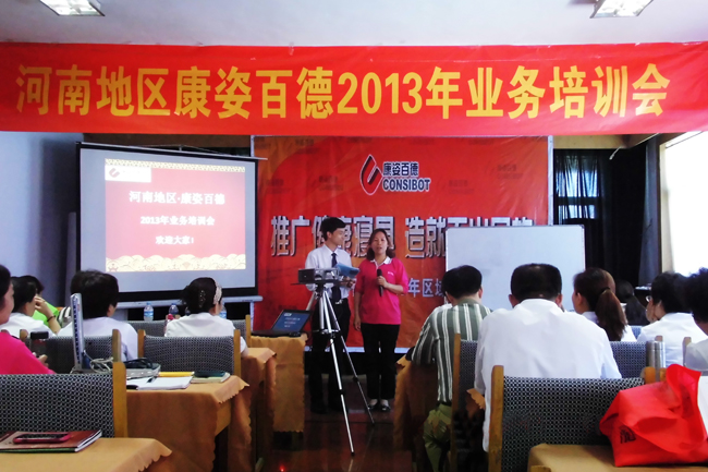 2013年5月 12日,河南地區(qū)康姿百德在鄭州滎陽賓館舉行了為期3天的業(yè)務(wù)培訓(xùn),河南各區(qū)縣代理商及部分員工40余人參加了此次培訓(xùn)。
