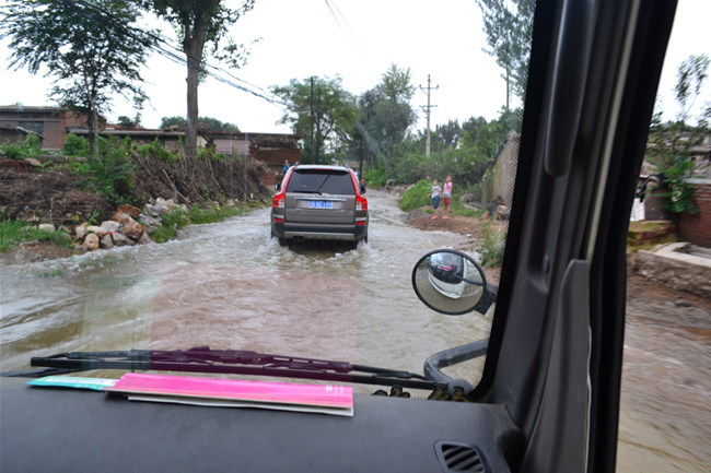 賑災(zāi)車隊在水路中行駛