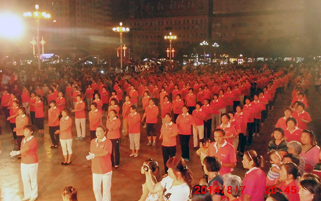 8月7日晚,河南新鄭市炎黃廣場上,廣大市民以各種方式迎接第六個“全民健身日”的到來。由康姿百德戶外健身營400多人組成的健身操隊(duì)伍,隨著歡快有力的音樂,共同跳起康姿百德健身操,以實(shí)際行動投入到全民健身活動中來,形成了當(dāng)?shù)厝窠∩淼囊坏懒溜L(fēng)景線。新鄭電視臺對本次活動進(jìn)行了現(xiàn)場采訪和報道。