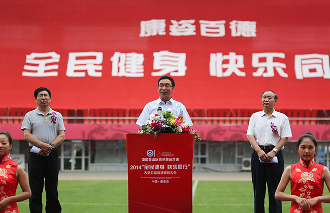 秦皇島康姿百德高新技術開發(fā)有限公司董事長、總經(jīng)理李銀祥致大會開幕詞;中國登山協(xié)會主席李致新、中國消費者協(xié)會副會長母建華、秦皇島市副市長馮志永等領導出席會議,李致新、母建華作講話,分別對康姿百德公司為“推廣健康科技、造就百歲民族”所做出的努力給予充分肯定;中國奧委會副主席段世杰宣布康姿百德第三套健身操展演開始。