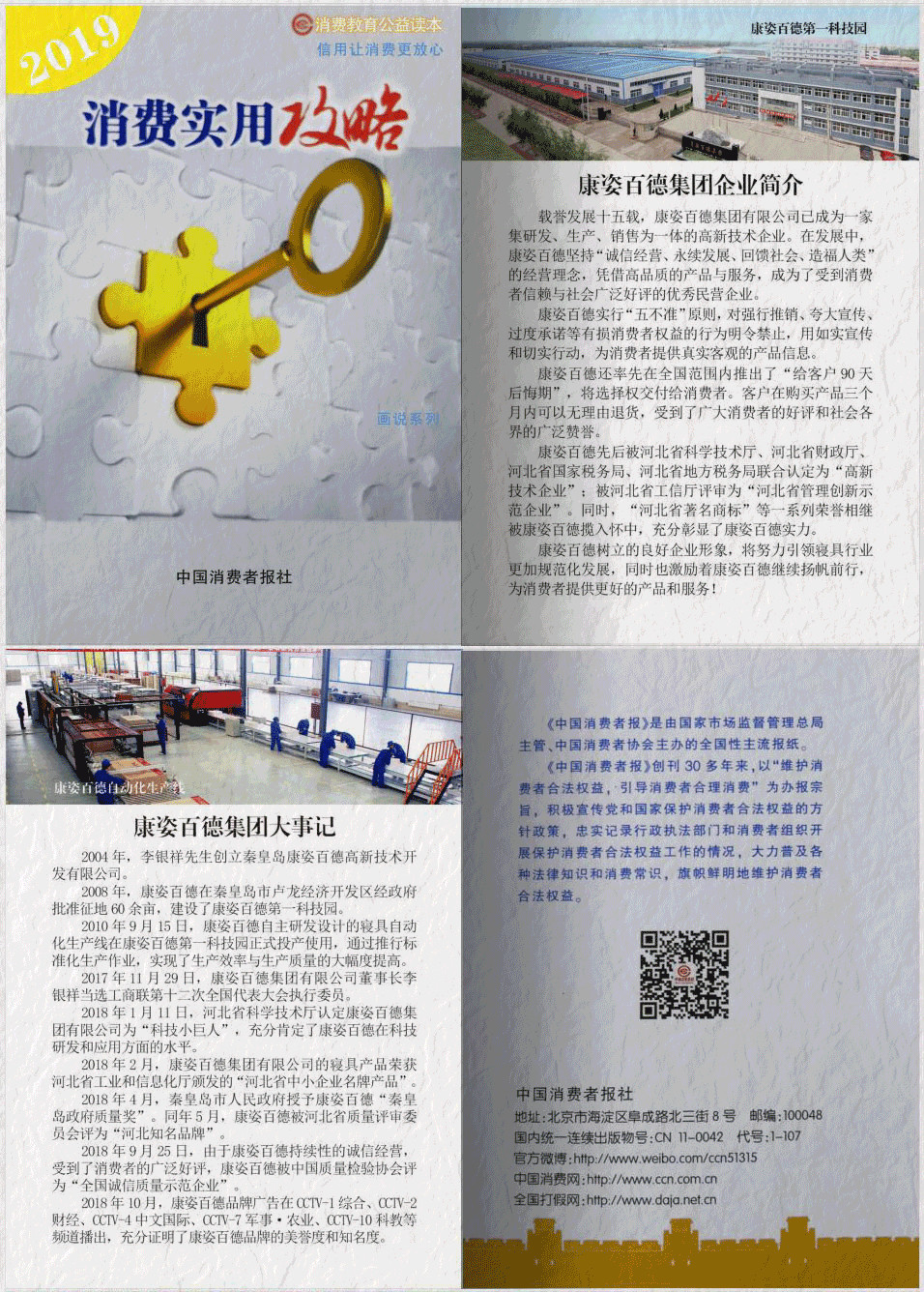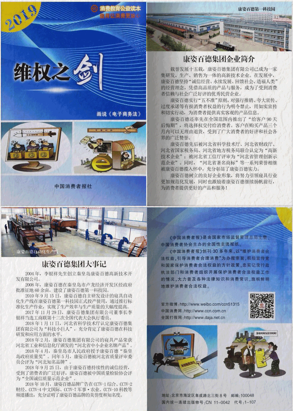 中國消費者報社印發(fā)的普法手冊《消費實用攻略》、《維權(quán)之劍》,均對康姿百德進(jìn)行了報道。