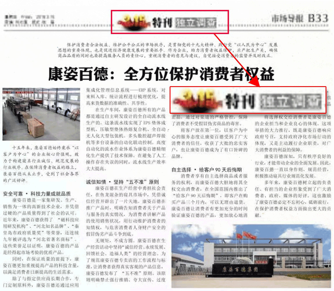 在3·15年度報告【彰顯信用的力量】專題中,《中國消費者報》對康姿百德“九十天無理由退貨”等一系列誠信經(jīng)營、保護(hù)消費者權(quán)益的行為進(jìn)行了專題報道。