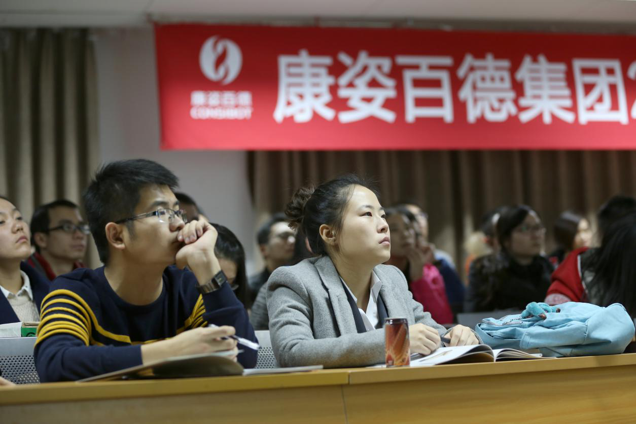 宣講會(huì)上,畢業(yè)于中國(guó)人民大學(xué)的在職管培生張崇新上臺(tái)分享時(shí)說(shuō)道:“當(dāng)時(shí)找工作時(shí)我只投了康姿百德一家公司,通過(guò)面試后如愿以?xún)數(shù)膩?lái)到康姿百德。在西點(diǎn)商學(xué)院培訓(xùn)后,進(jìn)入到市場(chǎng)指導(dǎo)工作,當(dāng)經(jīng)銷(xiāo)商說(shuō)‘崇新,這個(gè)店就靠你了’的時(shí)候,我感受到了肩上的責(zé)任與使命。正因如此,市場(chǎng)上的真實(shí)磨練與親身的實(shí)踐帶給我真正的成長(zhǎng)。與螺絲釘相比,我更愿意在康姿百德做一名‘建筑師’,為康姿百德的不斷壯大添磚加瓦,同時(shí)也希望大家來(lái)到康姿百德一同構(gòu)筑健康產(chǎn)業(yè)的偉大藍(lán)圖!”