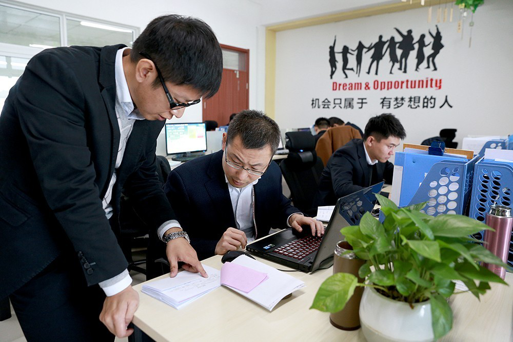 信息管理中心ERP團(tuán)隊(duì)小伙伴在和其它部門(mén)的小伙伴進(jìn)行溝通交流