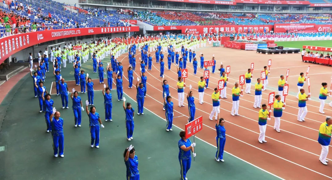今天,共有近萬(wàn)名健身愛(ài)好者參賽。大家各個(gè)精神抖擻,踏著康姿百德健身操音樂(lè)節(jié)拍,整齊劃一地舞動(dòng)起來(lái),將快樂(lè)綻放,把健康傳遞!