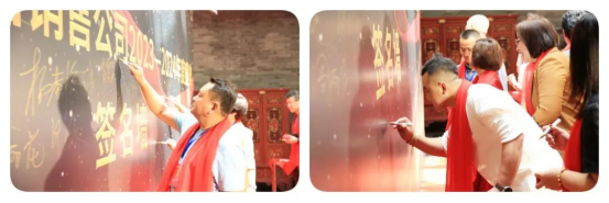 璀璨的燈光下,銷售公司的家人們滿懷喜悅的心情,昂首闊步走在紅毯上,這里有公司精心準備的伴手禮、承載著火熱祝福的紅圍巾。家人們紛紛在簽名墻前簽名并合影,記錄下這美好的時刻。