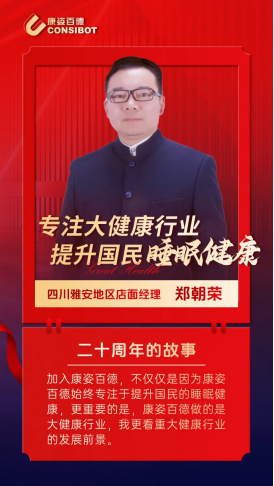 2017年,鄭朝榮在對(duì)康姿百德有了一定了解后,義無反顧的加入了康姿百德。這不僅僅是因?yàn)榭底税俚率冀K專注于提升國民的睡眠健康,更重要的是,康姿百德做的是大健康行業(yè),他更看重大健康行業(yè)的發(fā)展前景。每當(dāng)他看到顧客因?yàn)檫x擇了康姿百德的產(chǎn)品和服務(wù),臉上綻放出燦爛的笑容時(shí),他更是由衷地感到高興。