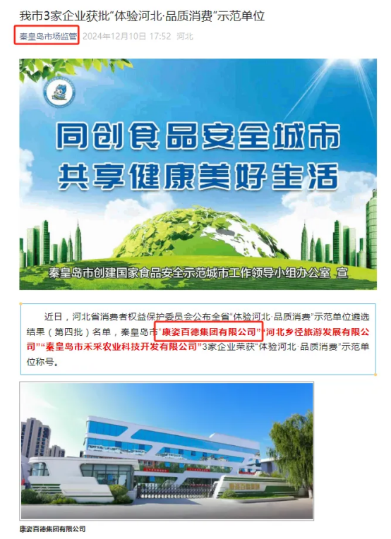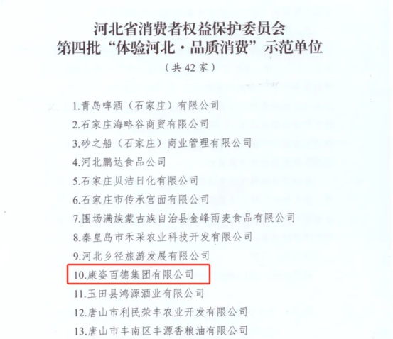 秦皇島市場監(jiān)管部門于12月10日在公眾平臺公布了本市第四批“體驗河北·品質(zhì)消費”示范單位入選名單,康姿百德集團榜上有名。