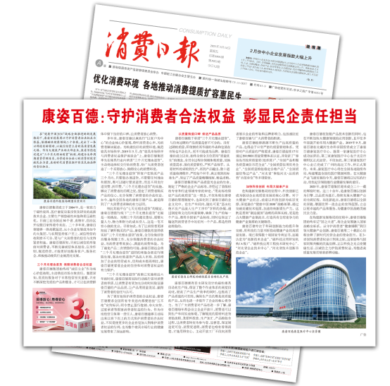 《消費日報》于1985年創(chuàng)刊,由國務院國有資產監(jiān)督管理委員會舉辦,中國輕工業(yè)聯(lián)合會主管主辦。康姿百德積極響應國家號召,主動維護消費者合法權益,僅2024年,消費日報就2次對康姿百德進行了專版報道。