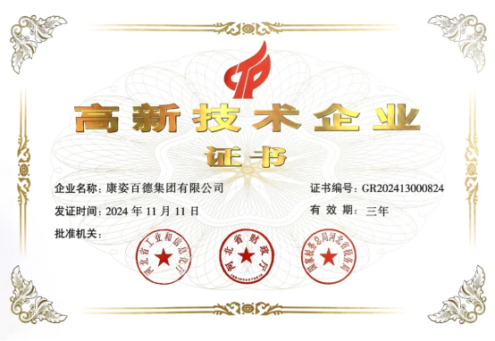 康姿百德自2015年首次通過(guò)認(rèn)定以來(lái),已連續(xù)多次通過(guò)復(fù)審。這不僅是對(duì)康姿百德創(chuàng)新能力的權(quán)威認(rèn)可,也標(biāo)志著康姿百德在技術(shù)研發(fā)實(shí)力、成果轉(zhuǎn)化效率以及綜合管理水平方面均達(dá)到了國(guó)家審核的標(biāo)準(zhǔn)。