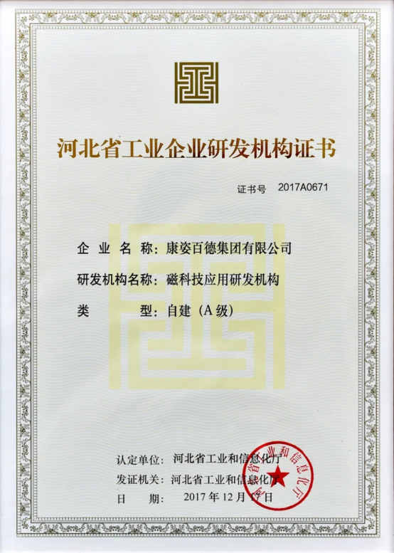 康姿百德在研發(fā)經(jīng)費(fèi)占比、在研項(xiàng)目數(shù)量、知識(shí)產(chǎn)權(quán)產(chǎn)出等方面均遠(yuǎn)超河北省工業(yè)和信息化廳的基本要求,展現(xiàn)出系統(tǒng)化、規(guī)?;难邪l(fā)實(shí)力。該榮譽(yù)充分說(shuō)明了康姿百德在磁應(yīng)用技術(shù)領(lǐng)域的領(lǐng)先地位,是對(duì)康姿百德在磁科技領(lǐng)域所做貢獻(xiàn)的認(rèn)可。